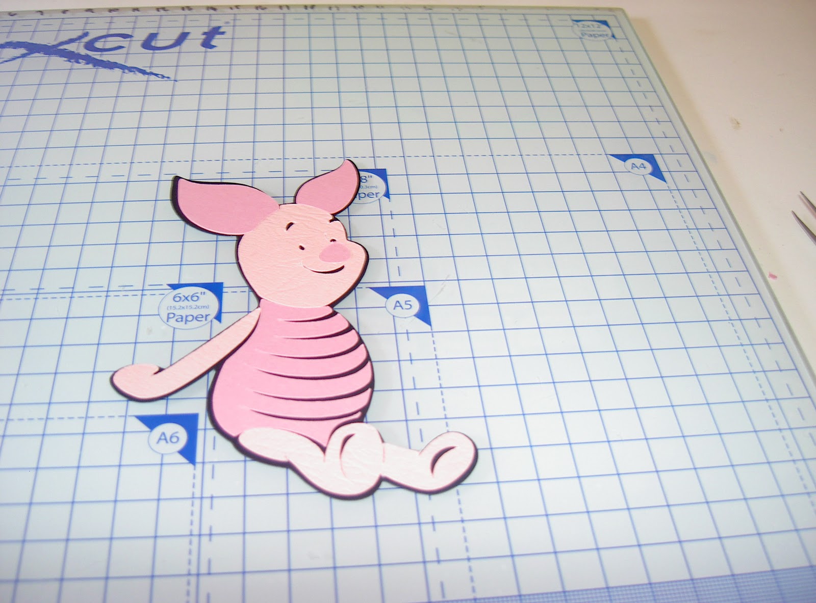 Well i had a card order this week for a little girl who loves pink and piglet so iI have put together a topper to go on a 8x8 card. I have used my Winnie the Pooh cart for my cricut to cut out little piglet and the piglet wording. I ahve used my doodle type cart to get the letters to spell 'today' & the number 6. I used a circle punch for the balloon on made a small adition for the stem of the balloon to tie on the cord. I have used a sticky back glitter sheet for the base of the topper and then mounted it on black to just merge it in with the piglet etc. I have added a few pics on the making piglet and his topper then the finished thing x (Oh Pics added also so Fi can see i have used my Cricut again!!!) :0)